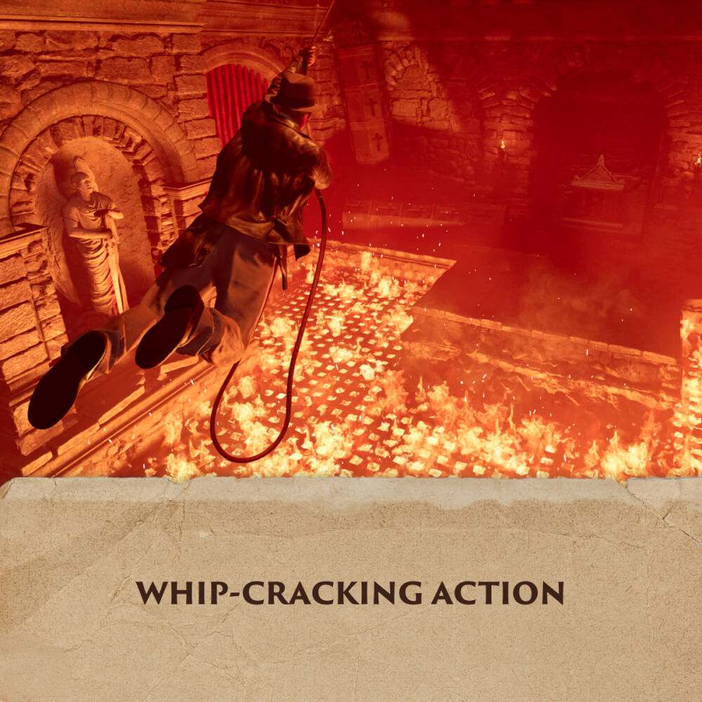Indiana’s trademark whip remains at the heart of his gear and can be used to distract, disarm, and attack enemies.