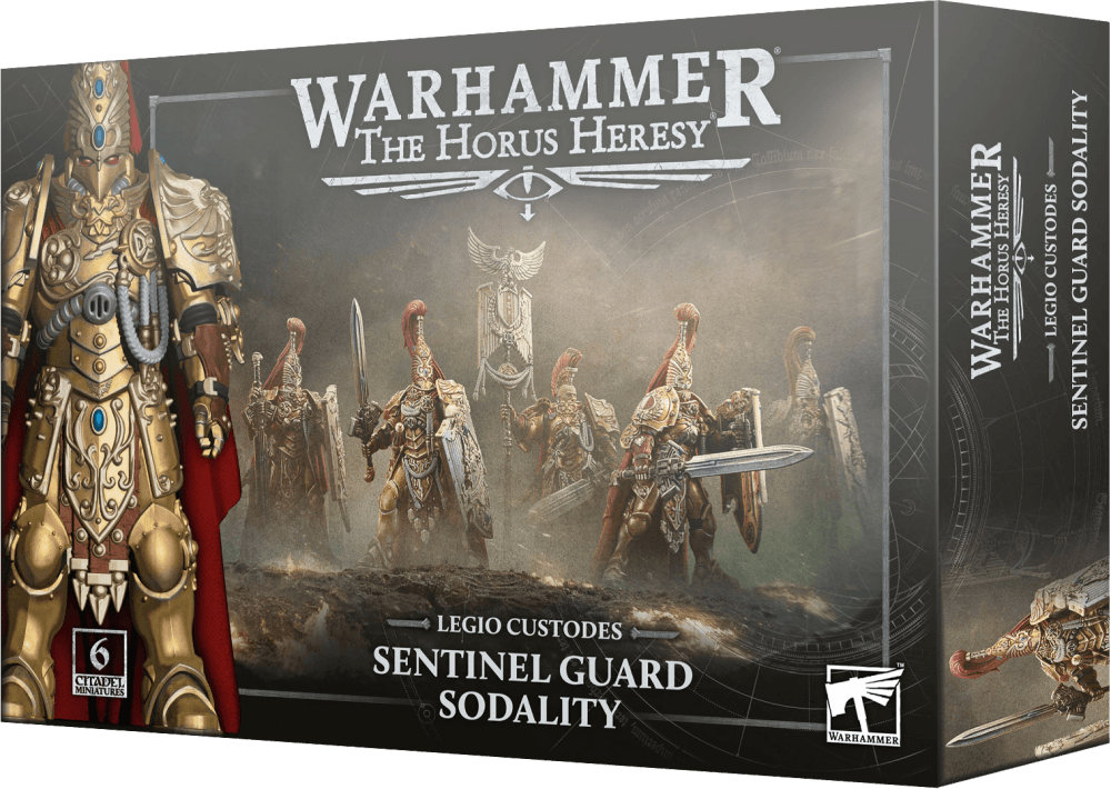 Sentinel Guard Sodalities are deployed to protect emissaries on hazardous ground and hold defensive positions against the most grievous onslaught. They are outfitted with energy field-reinforced ‘praesidium’ shields – a precursor to the Legiones Astartes’ storm shields – capable of resisting the heaviest weapons fire. In spite of this protective role, the physical prowess of each Custodian, and the peerless wargear with which they are outfitted, also affords the Sentinel Guard the mobility to perform far more aggressive functions in open battle, where their resilience makes them formidable linebreakers.